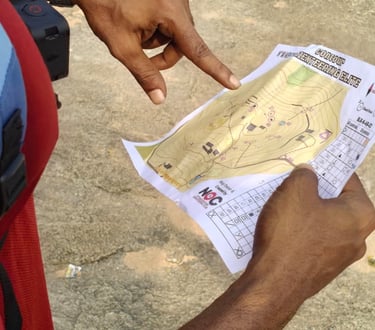 Following the engaging briefing session, participants were divided based on their skill levels and provided with different sets of maps - a Beginner and an Elite map. The Beginner map, designed with 10 control points, was accessible and enjoyable for kids, first-timers, and parents, allowing them to build confidence while exploring the basics of Orienteering. In contrast, the Elite map featured 20 control points and pushed experienced participants to their limits, testing their orienteering skills, decision-making, and ability to read and respond to the terrain quickly. Confidence built quickly as the participants began traversing the terrain and were able to locate the control points using the map.